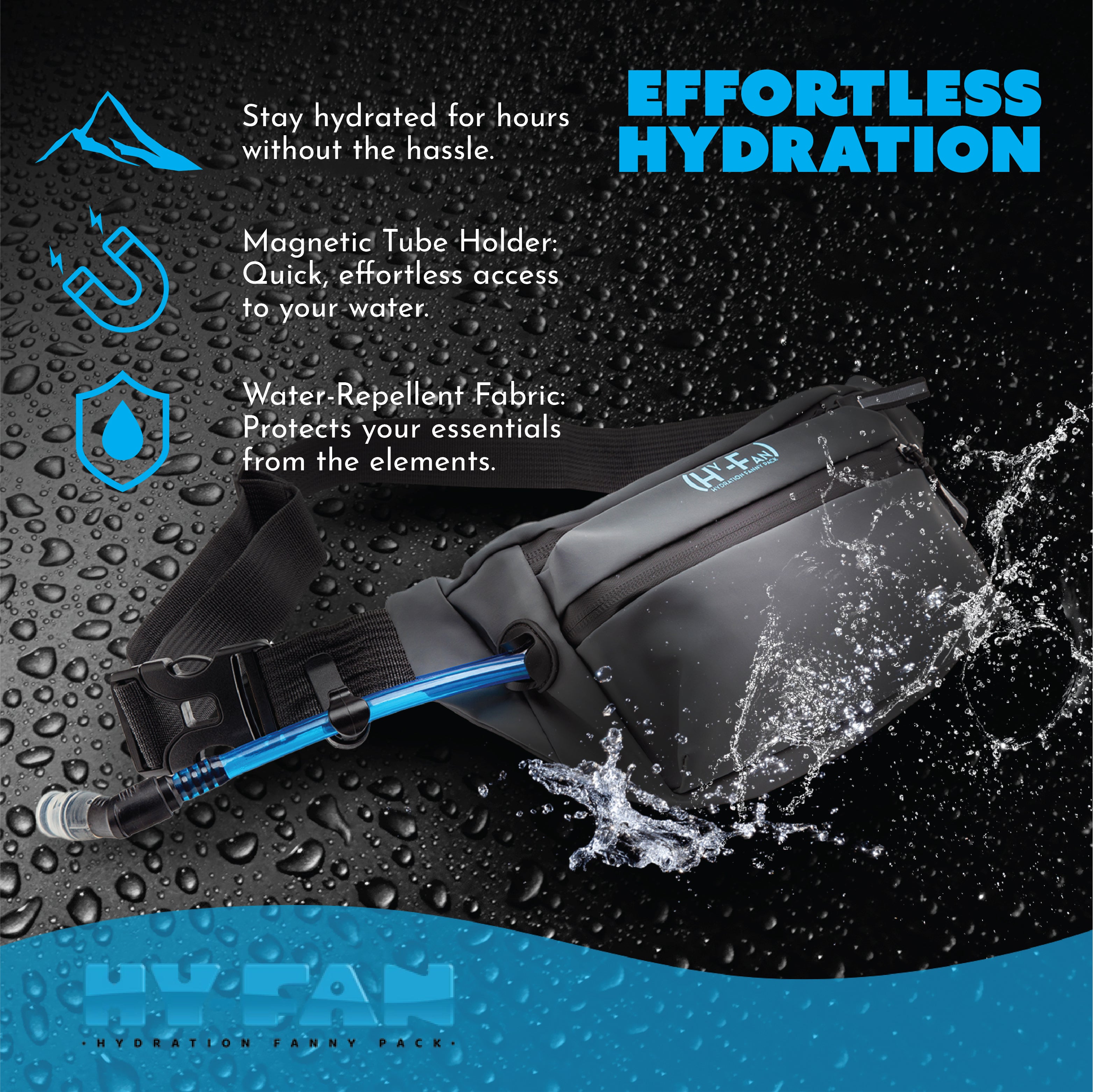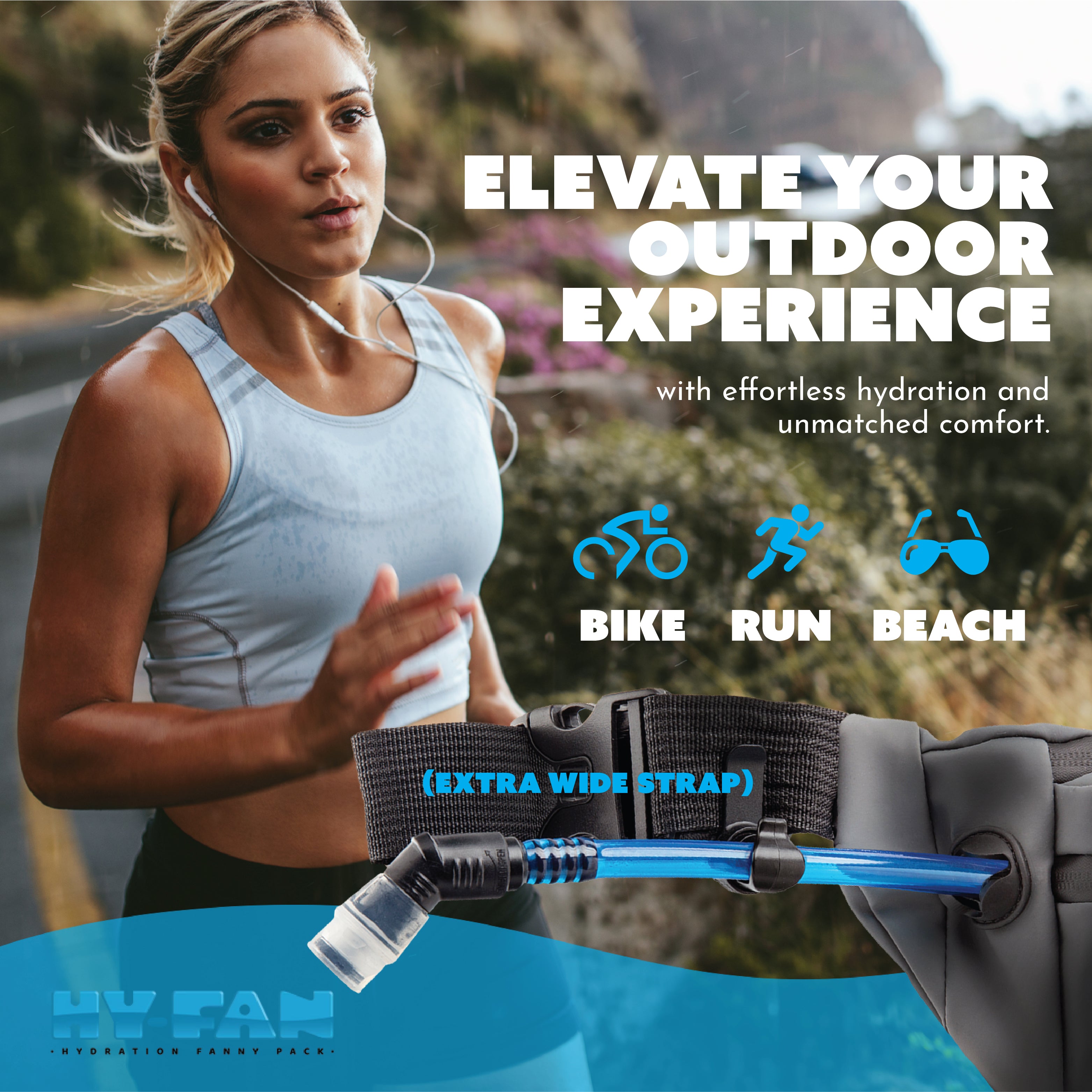 Hy-Fan empowers adventurers to leave the bulky bottles behind and freely pursue their outdoor passions, from snow sports, to festivals and sports events. Our hands-free hydration fanny packs carry all your essentials, seamlessly integrating hydration with functionality for biking, hiking, and more.